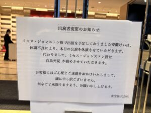 2026/3/21(Sat)ソワレ ←安蘭けい休演により、白鳥光夏がジョンストン役